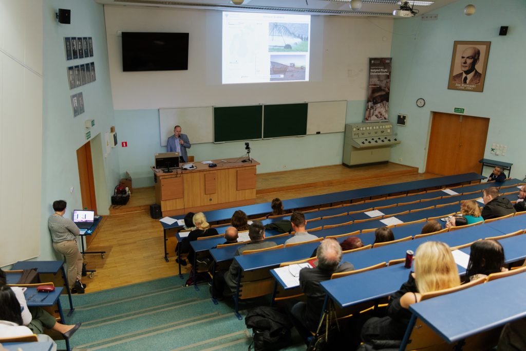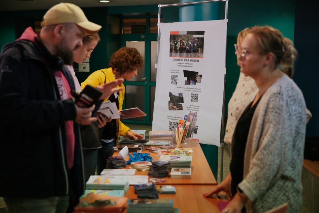 W części wykładowej zaprezentowano cztery wystąpienia dotyczące krajobrazu i georóżnorodności, transmitowane równolegle przez platformę TEAMS. Po sesji wykładowej uczestnicy odwiedzali stoiska kół naukowych oraz punkty informacyjne dotyczące kierunków studiów.